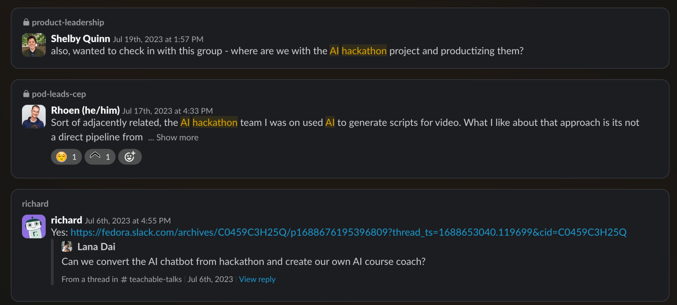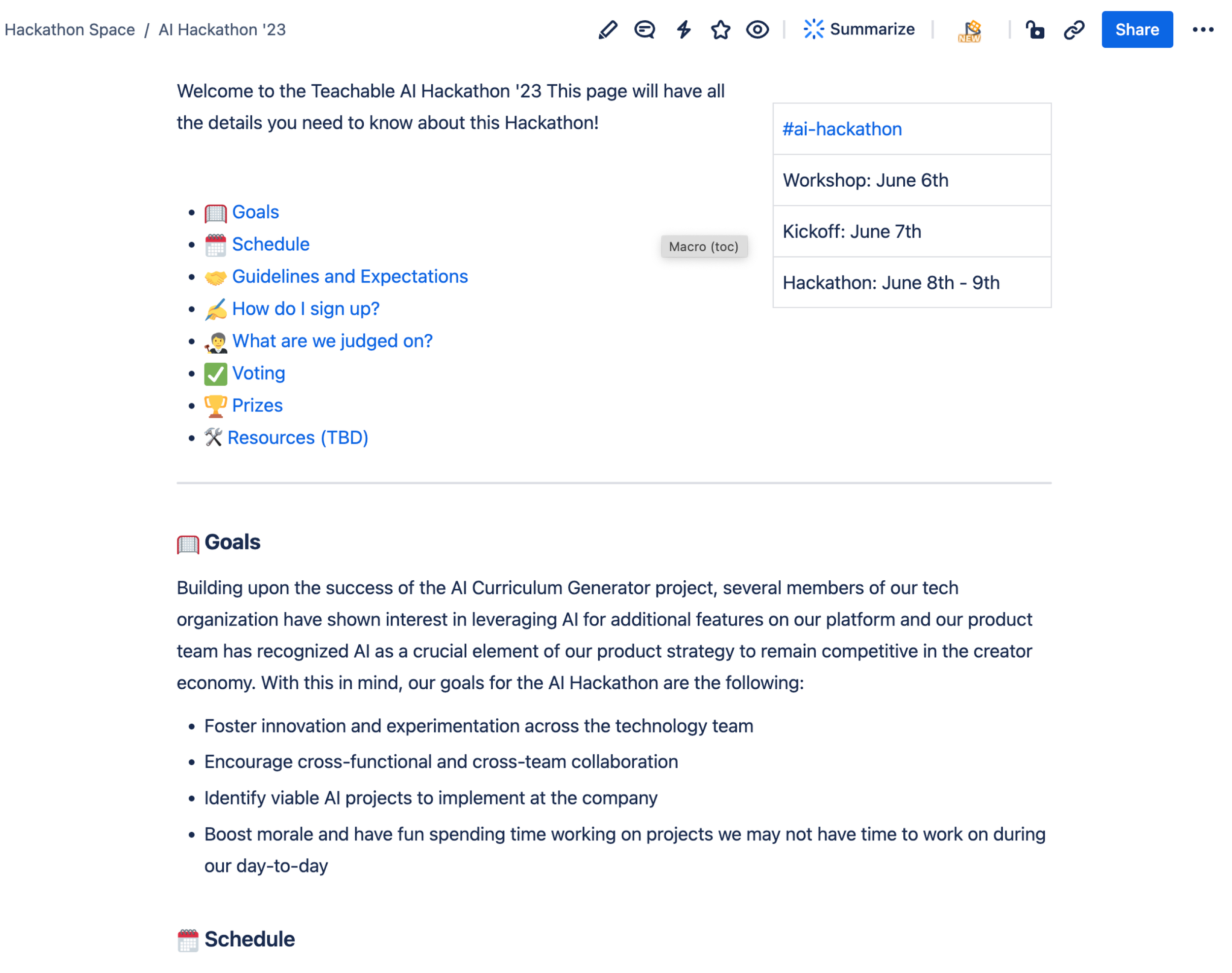 3. Co-organizing an AI hackathon to drive innovation and experimentation within the tech team, seeking to pinpoint feasible AI projects for Teachable.
