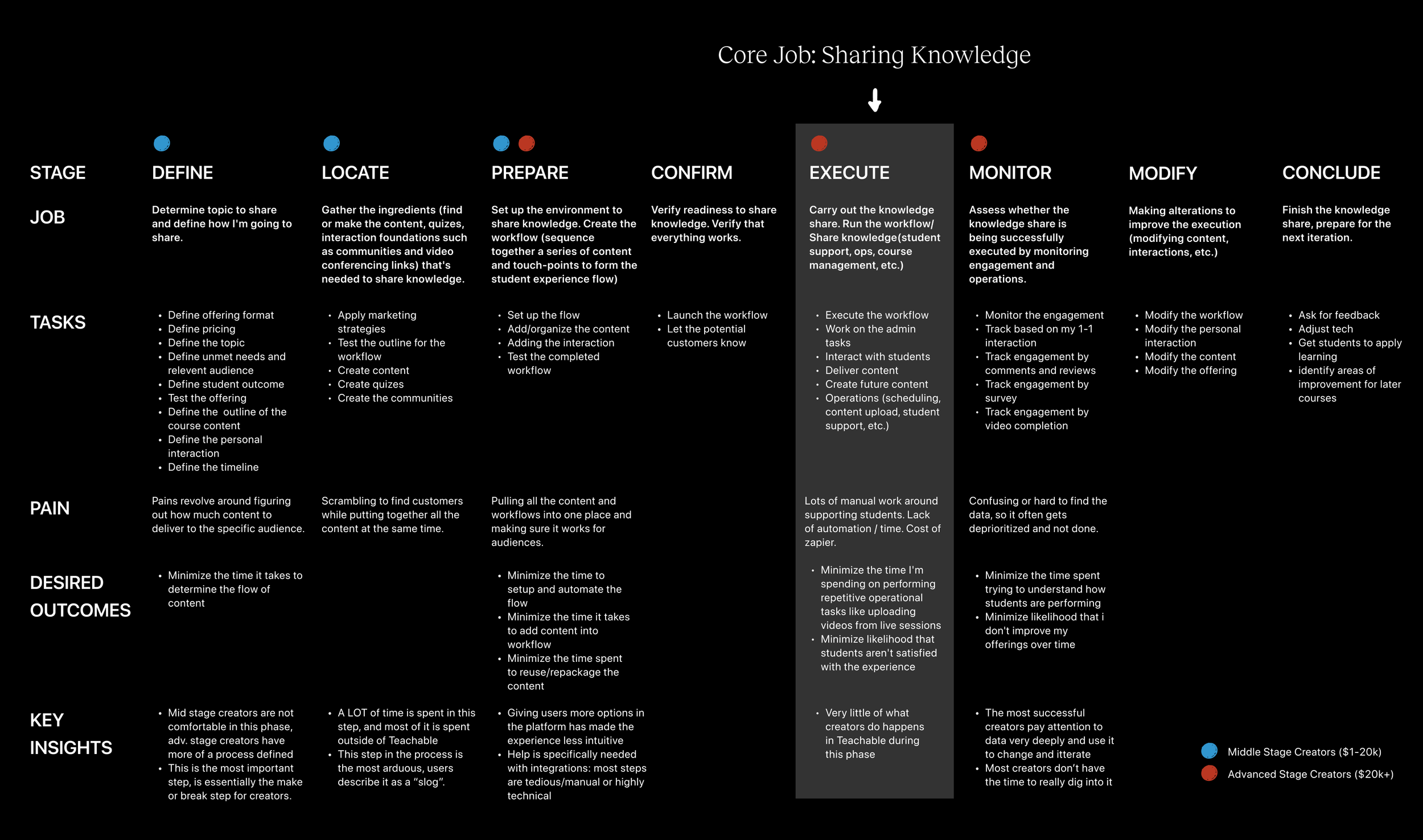 Being a knowledge creator involves more than just sharing what you know. It's about deciding what to teach, structuring the content, and adding interactive elements like quizzes to keep it interesting. There's a lot that goes into it! The job map (from previous research) shed light on steps that are involved in getting a course launched.