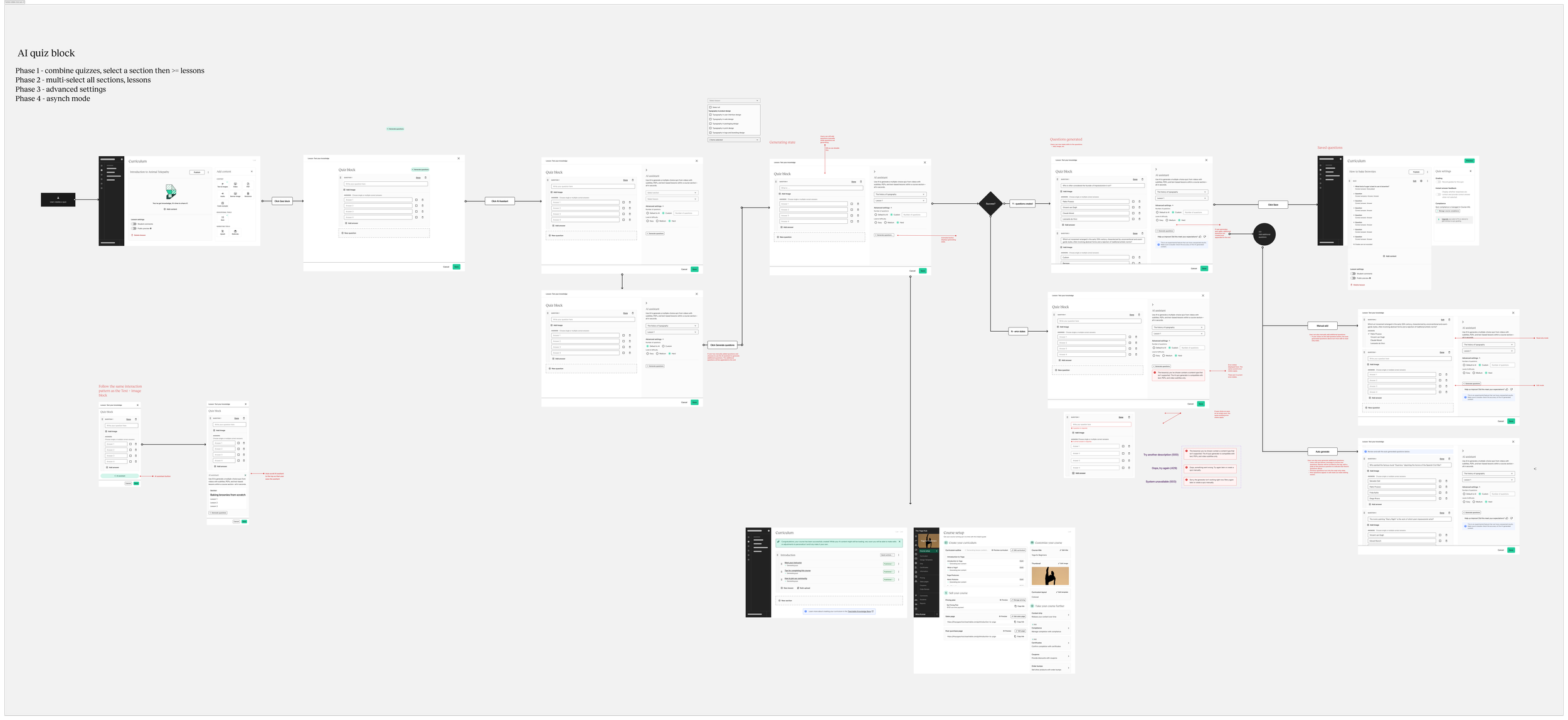 When designing the quiz generator experience, it was critical to also design all of the edge cases. For example, what happens if a user exits the quiz generator before generation is complete, what do they see if they come back? What does a read-only mode look like, etc. These cases were designed and accounted for in user flows diagrams.