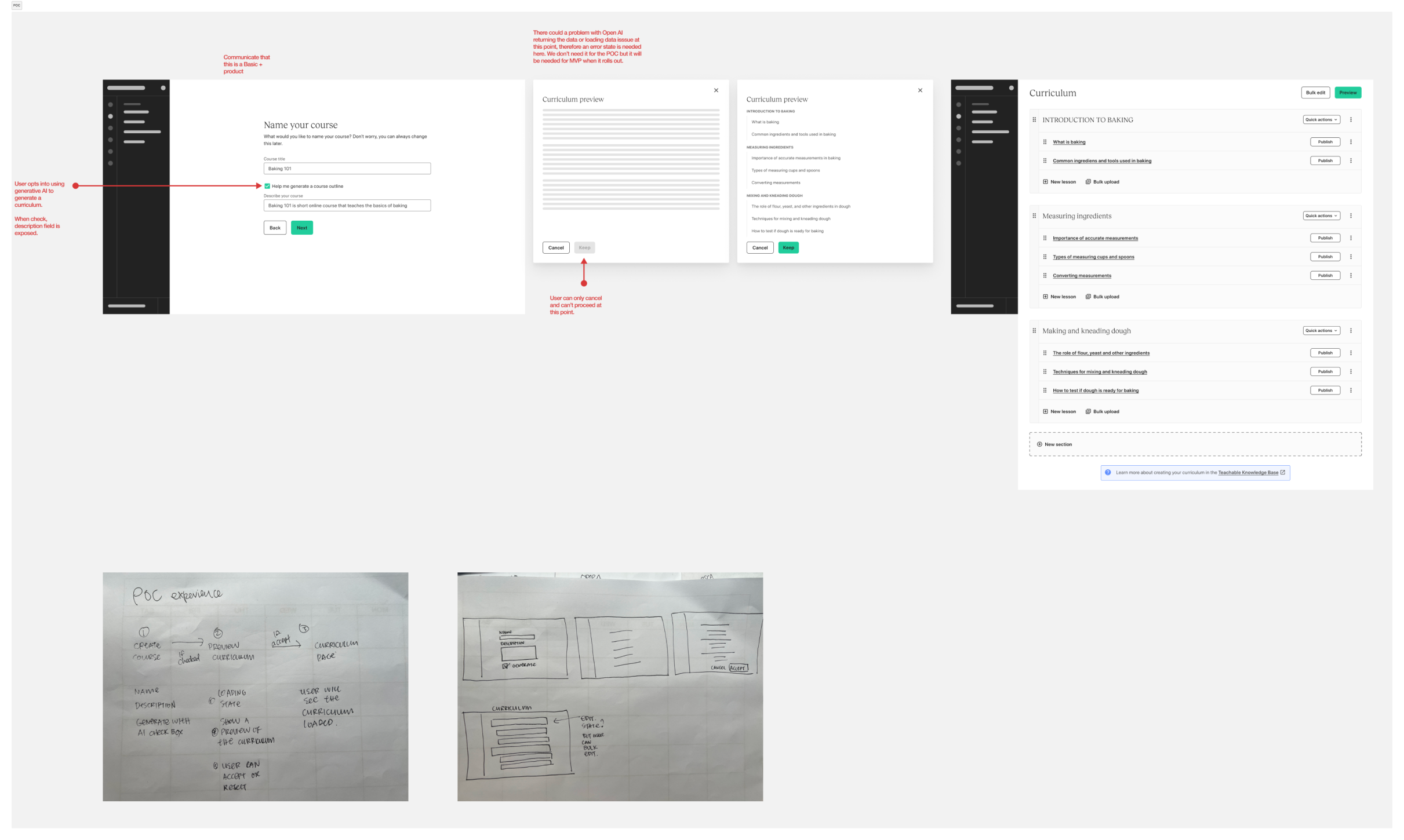 Creating a curriculum can be a real challenge for both new and experienced creators. That's where generative AI comes in handy, making it a perfect solution for this common user frustration. Creating a prototype was crucial for demonstrating instead of just explaining in terms of getting buy-in from leadership and creating a buzz within Teachable.