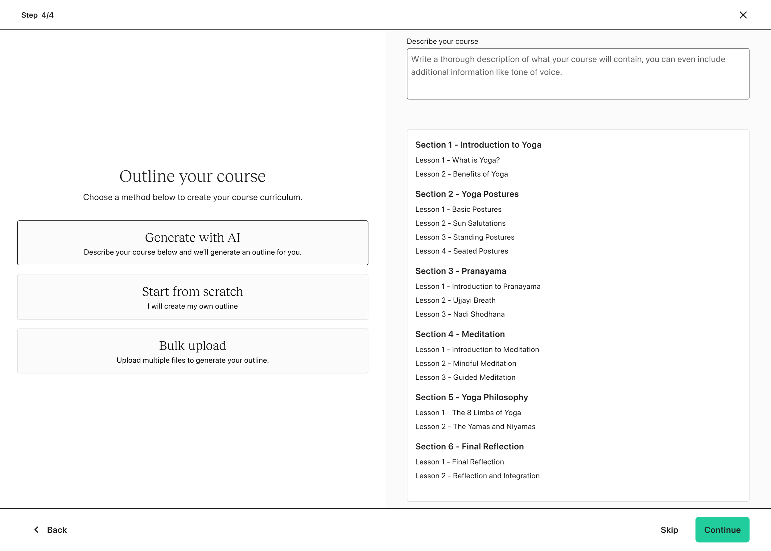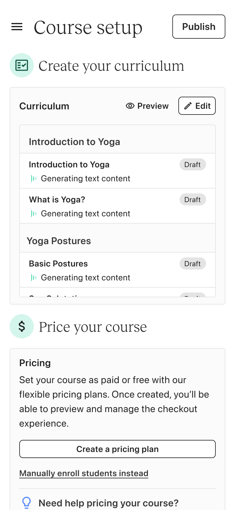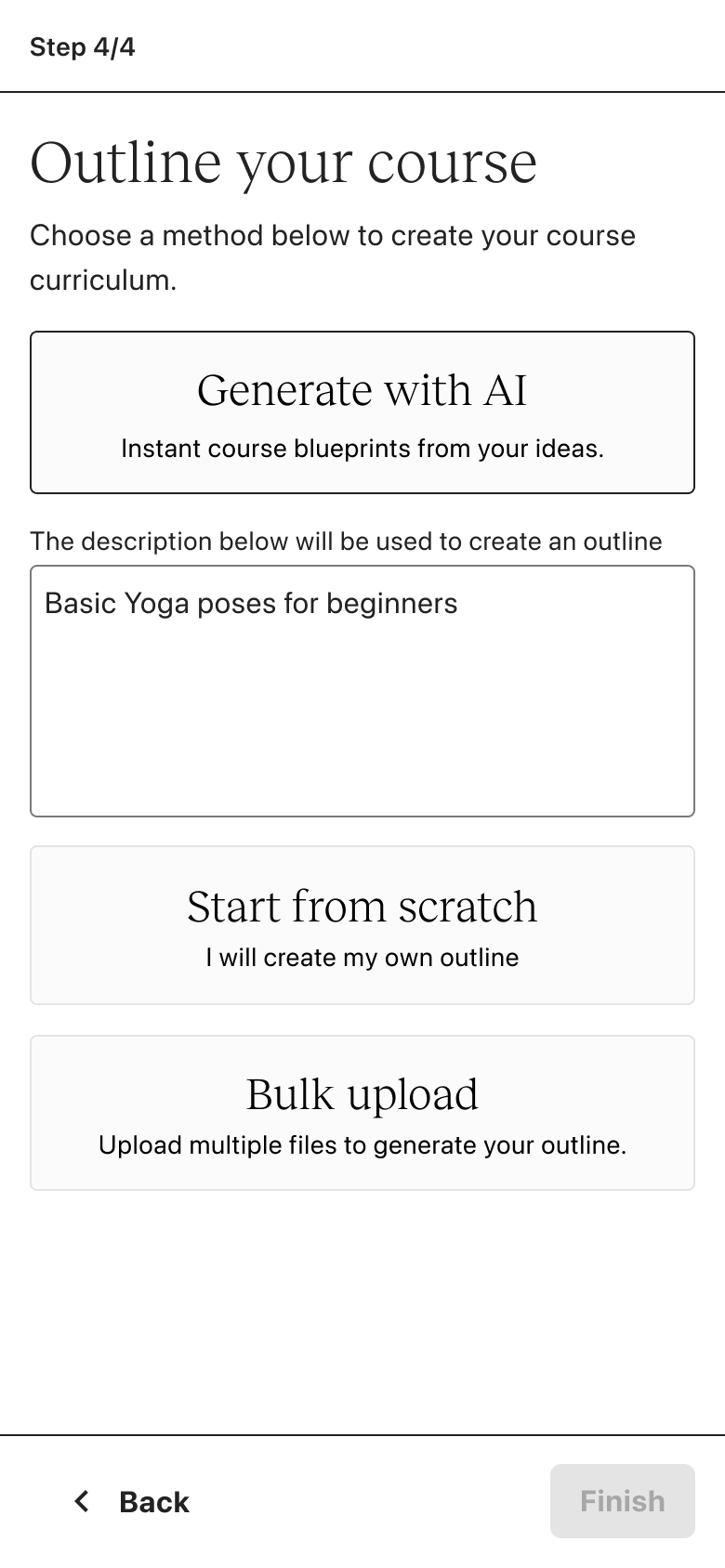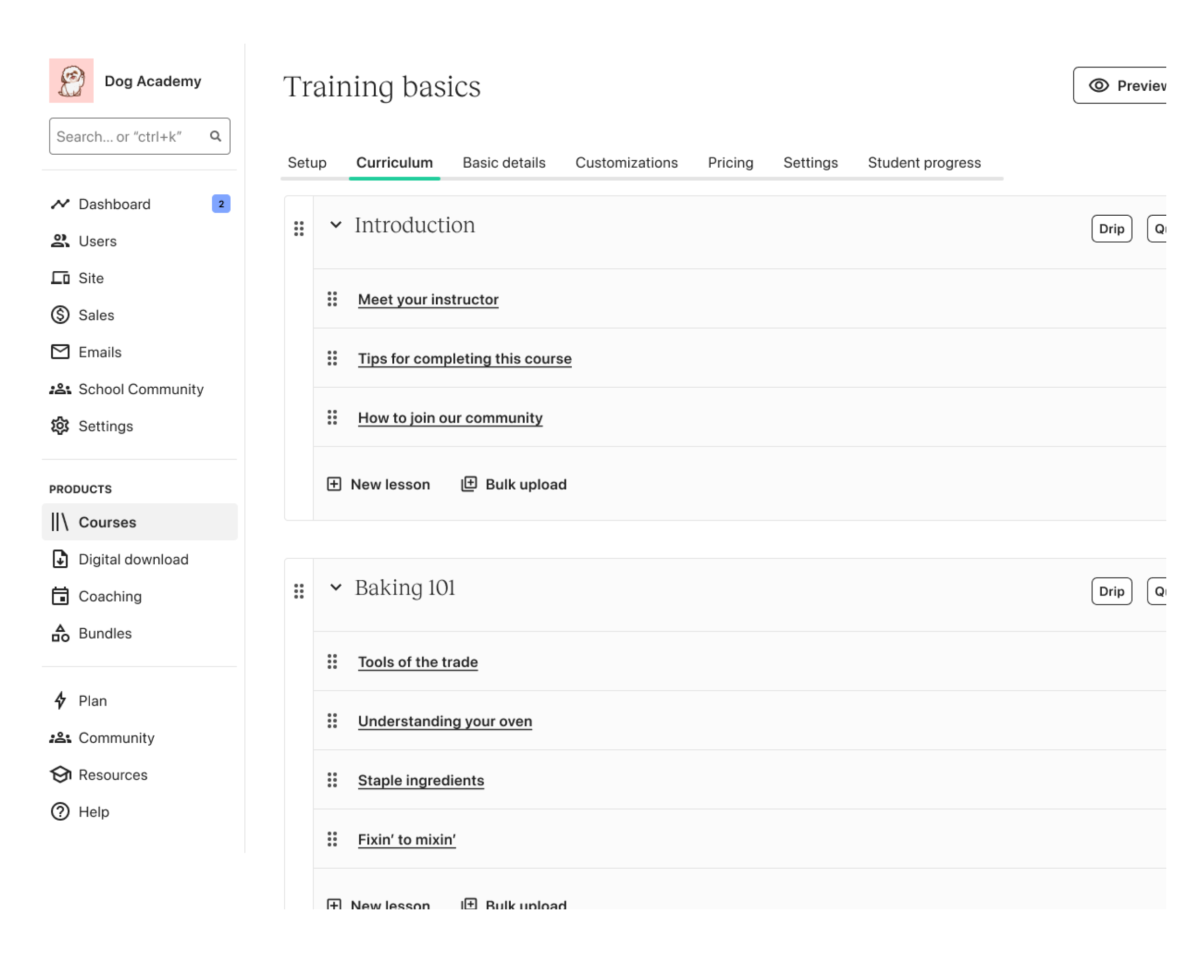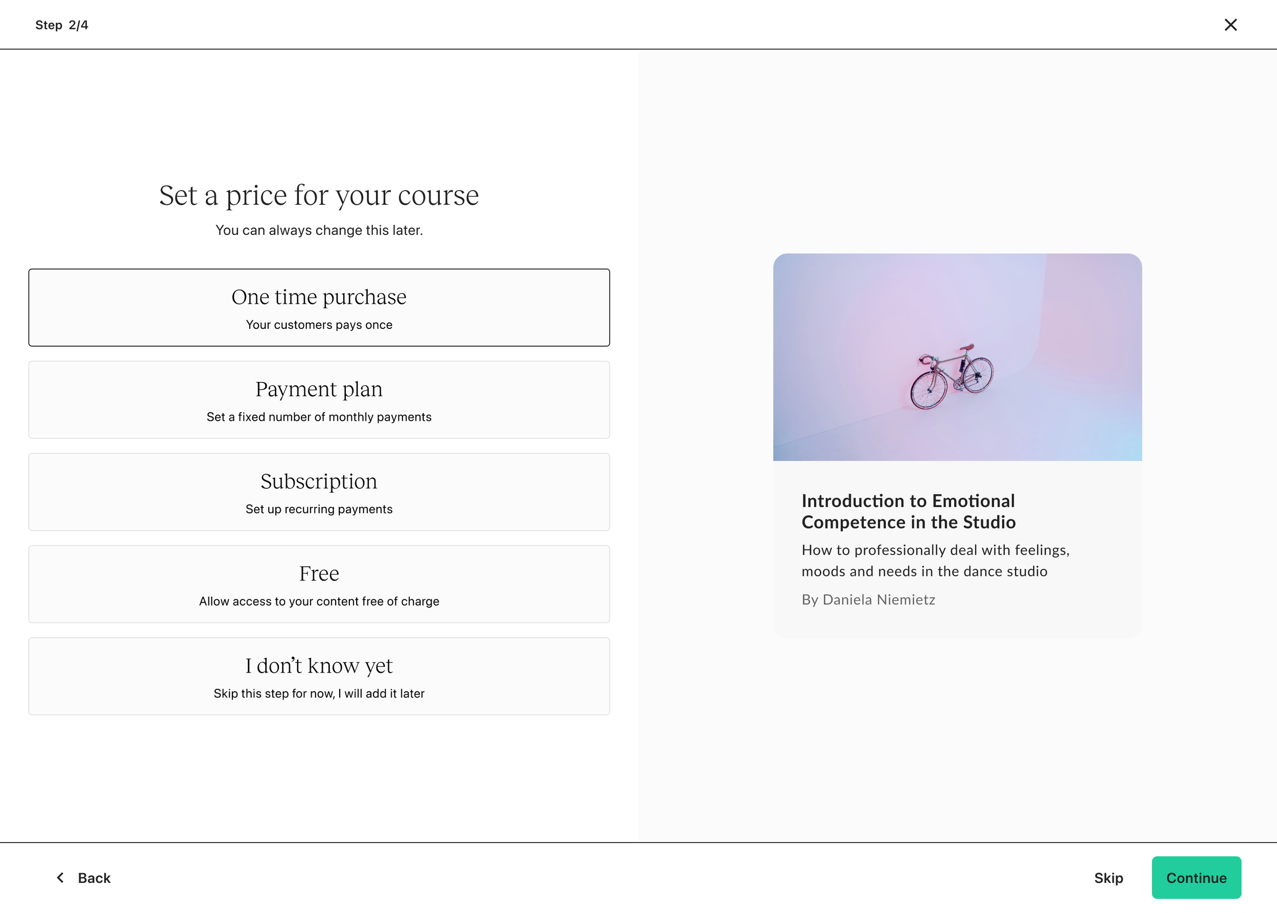 Whether you’re an experienced creator or brand new, the same experience applies. If you intend to create a digital download, coaching sessions or community, you’re first funneled into courses. There is no personalization.