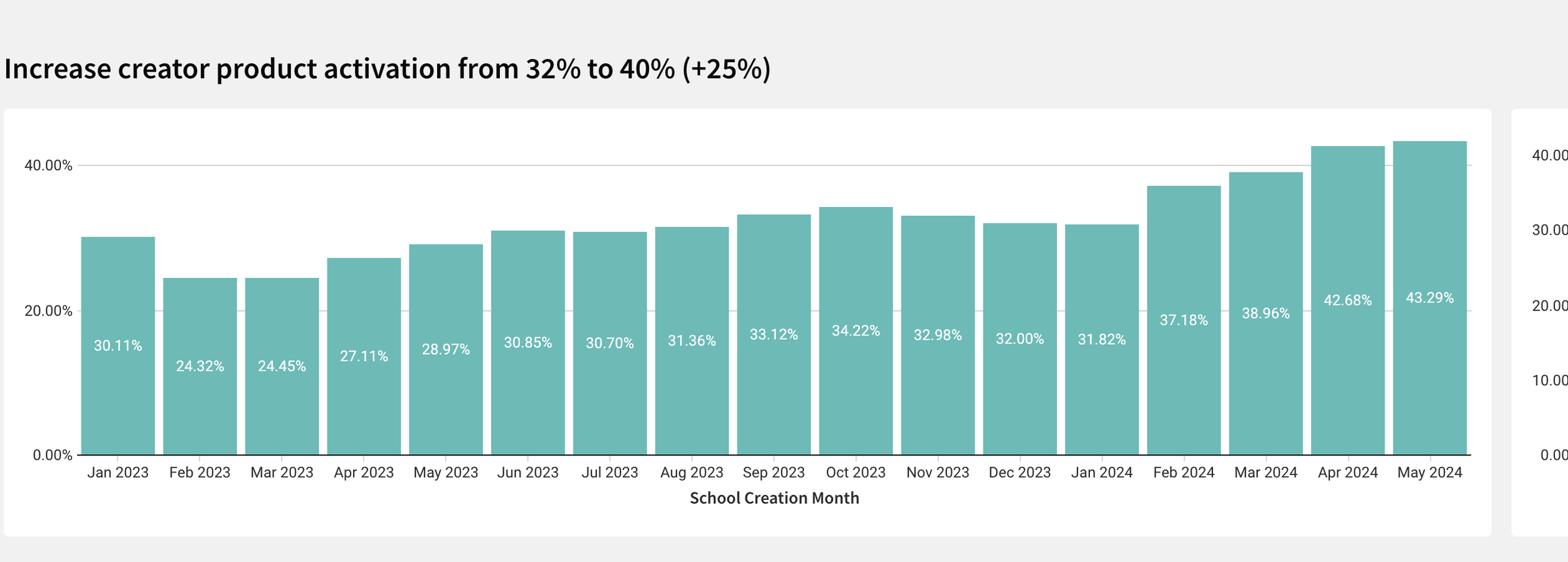 Product activation increased to 43%