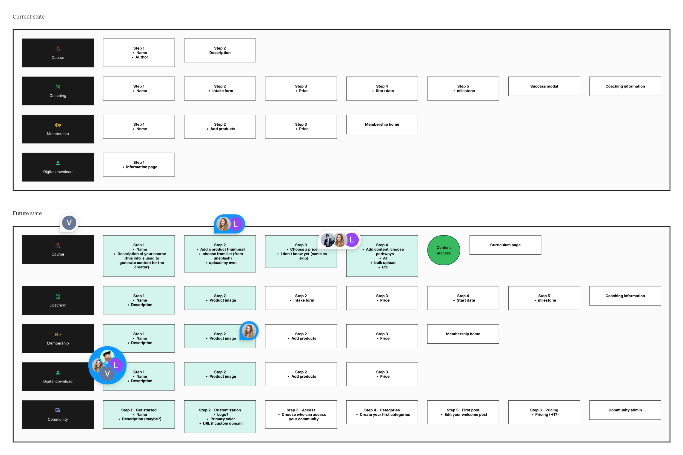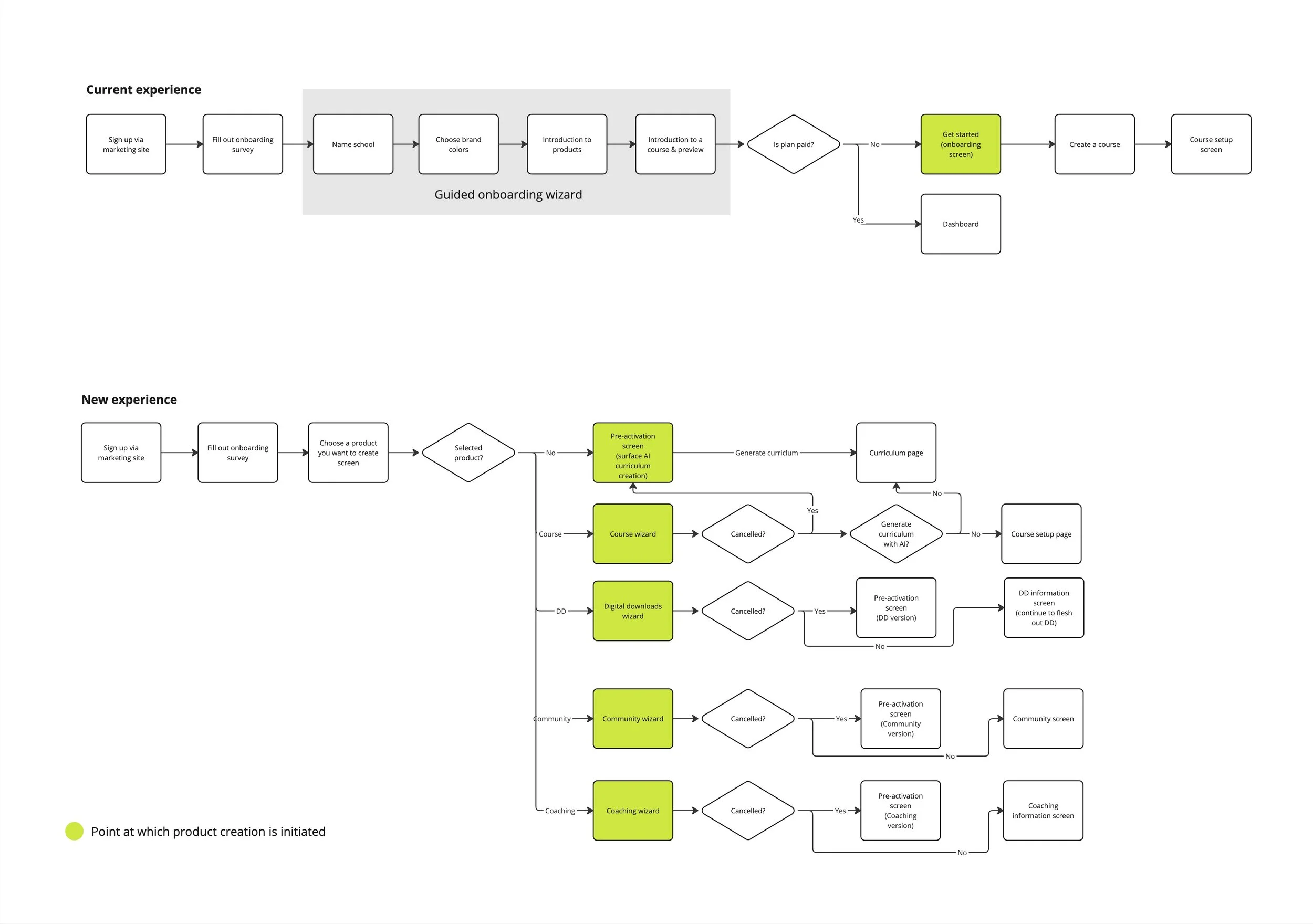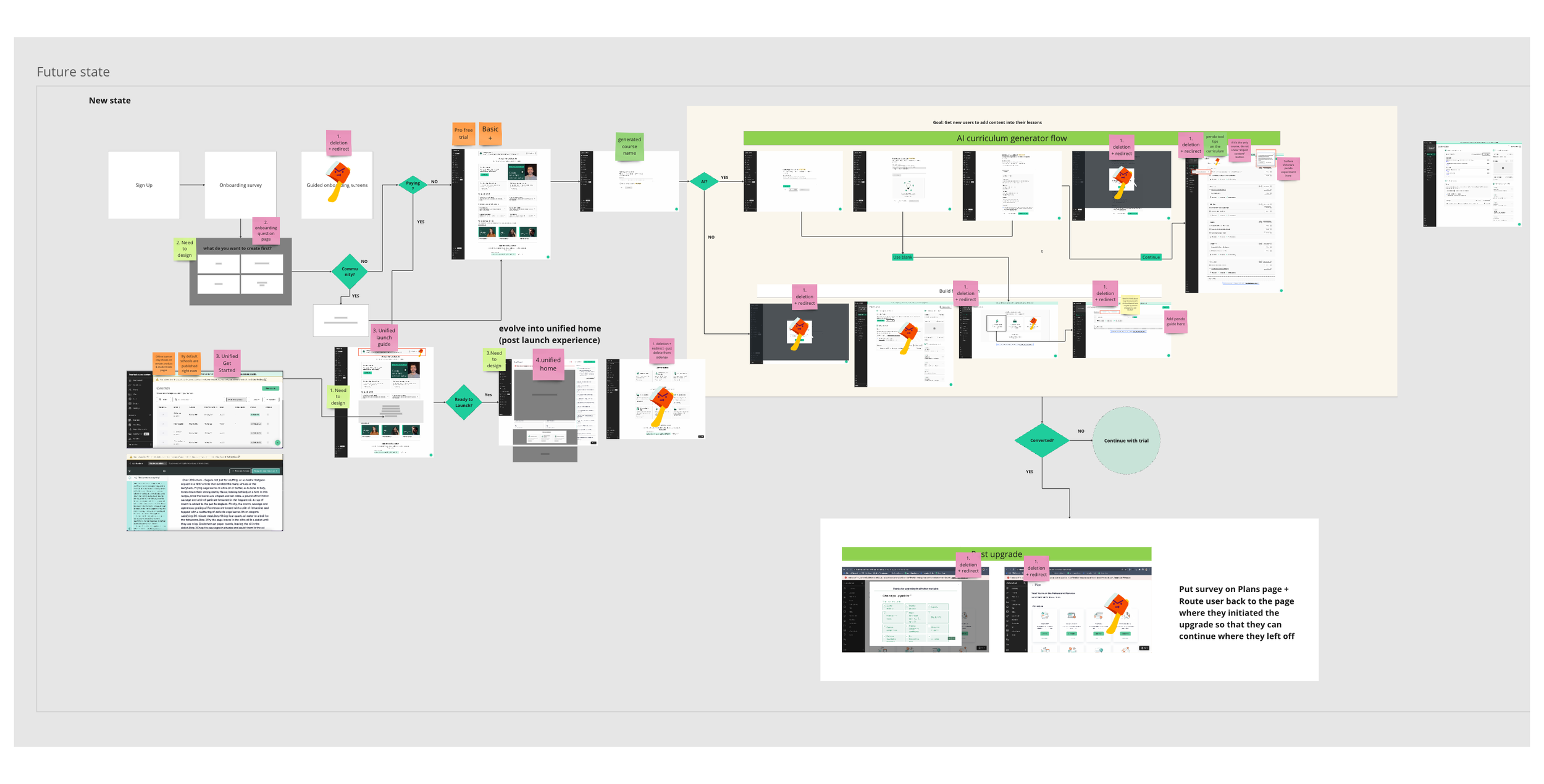 I took a deep dive into how a new user goes through signup to course creation to see how fragmented it is. Based on this, the team figured out what needs to be tackled first. As you can see, one of the first things we did was to remove unnecessary steps in the flow which caused friction to streamline the process.