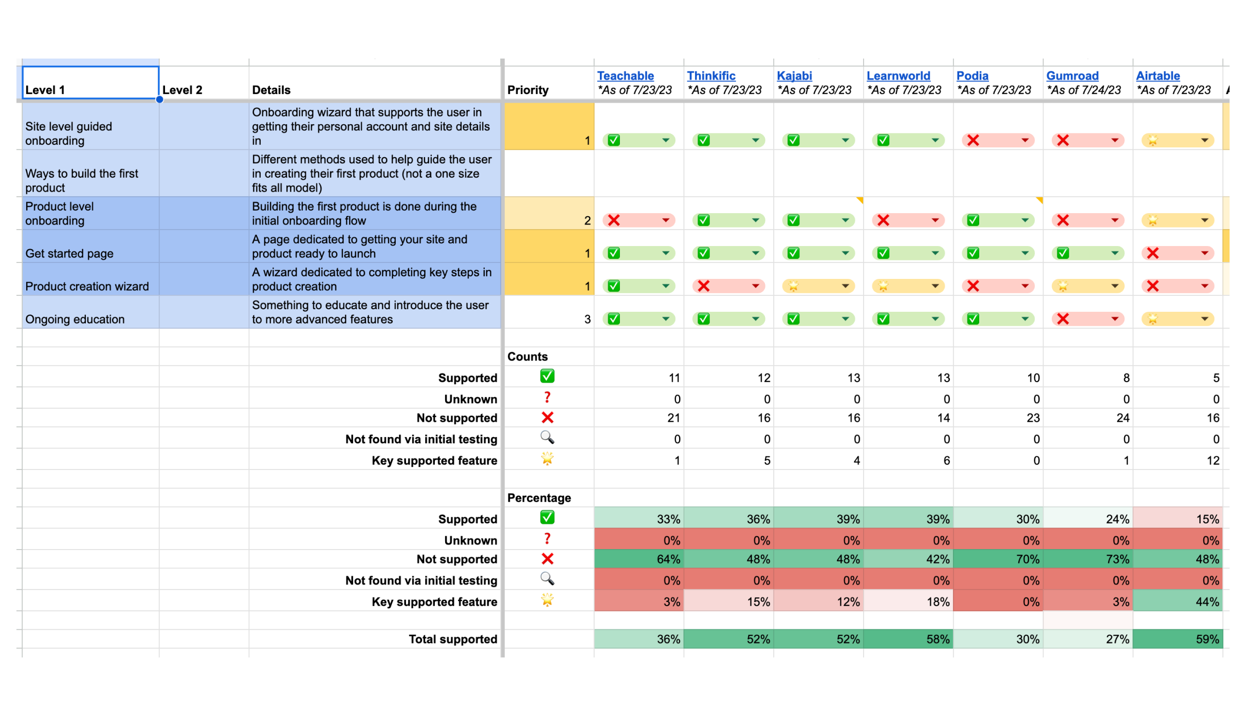 We assessed competitor onboarding experiences to gauge our position. Not all onboarding solutions are universal. Companies must select what aligns with their product and user needs. Extensive features do not always equate to superior outcomes, yet this assessment indicates our current positioning – somewhere in the middle.