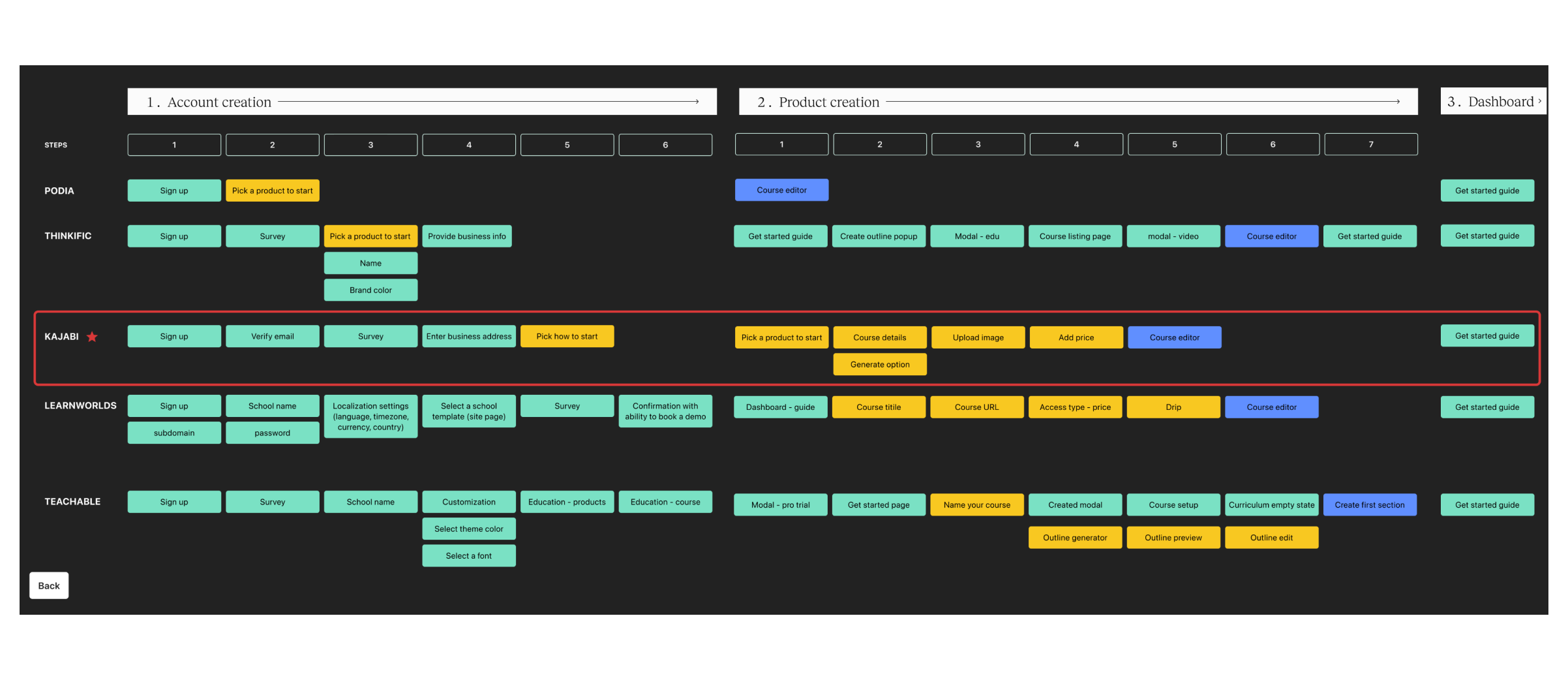 During the review of the onboarding user flows, we found that Teachable takes longer to create products compared to our direct competitors. This delay could impact user experience and competitiveness in the market.
